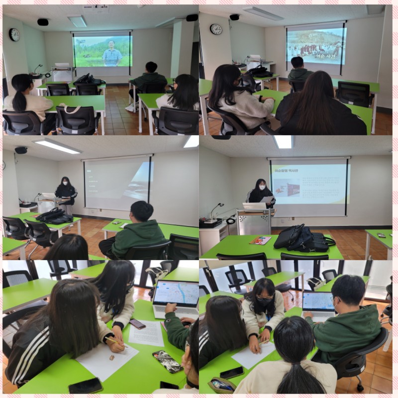 에이레네는 오늘 우리나라 근현대사의 아픈 상처인 여순항쟁의 무대가 되는 여수와 순천 지역을 방문하기 위해 자료조사와 ppt 발표를 진행하였습니다. 또한 영상을 시청하면서 몰랐던 부분과 전문적인 지식을 습득하였습니다.