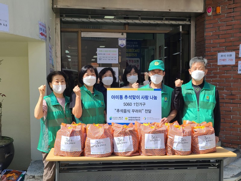 아미동지역사회보장협의체, 아미동새마을부녀회, 아미동새마을지도자협의회, 부산기독교종합사회복지관이 사회적 고립 우려 가구가 풍요로운 추석을 보내시길 바라는 마음으로 추석 음식 꾸러미를 준비하였습니다.