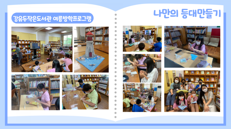 강유두작은도서관에서 여름방학을 맞이하여 초등학생들을 대상으로 독서문화프로그램을 진행하였습니다.