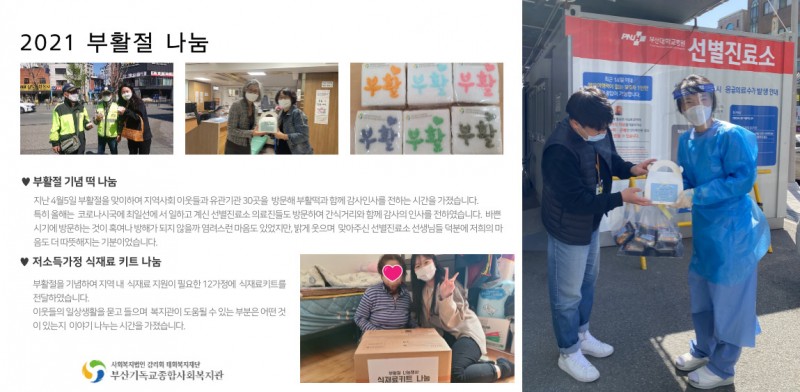목록 2021 부활절기념 나눔행사 페이지 정보 최고관리자 조회 1,116 입력 2021-04-07 14:50 댓글 0 본문 지난 4월5일(월) 지역 내 유관기관과 이웃들을 방문하여 부활의 기쁨을 함께 나누는 시간들을 가졌습니다. 계속하여 지역의 이웃들과 함께 걸어가는 부산기독교종합사회복지관이 되도록 하겠습니다. 목록 이전글마을과 사람속에 있는 놀터 "청소년기획단YOLO 5기" 첫 모임 진행 2021.04.12 다음글복지관 소개영상 2021.04.06 댓글 0 댓글목록 등록된 댓글이 없습니다.