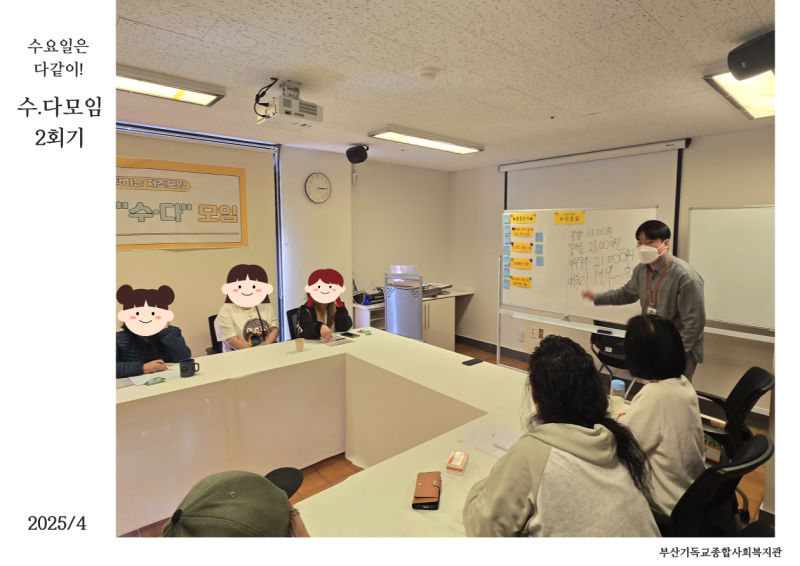 저희 복지관 사례관리팀에서 오랜 시간 준비한 정신건강 자조모임 ‘수요일은 다같이! 수.다모임’이 드디어 2025년 4월, 첫 회기를 시작했습니다!