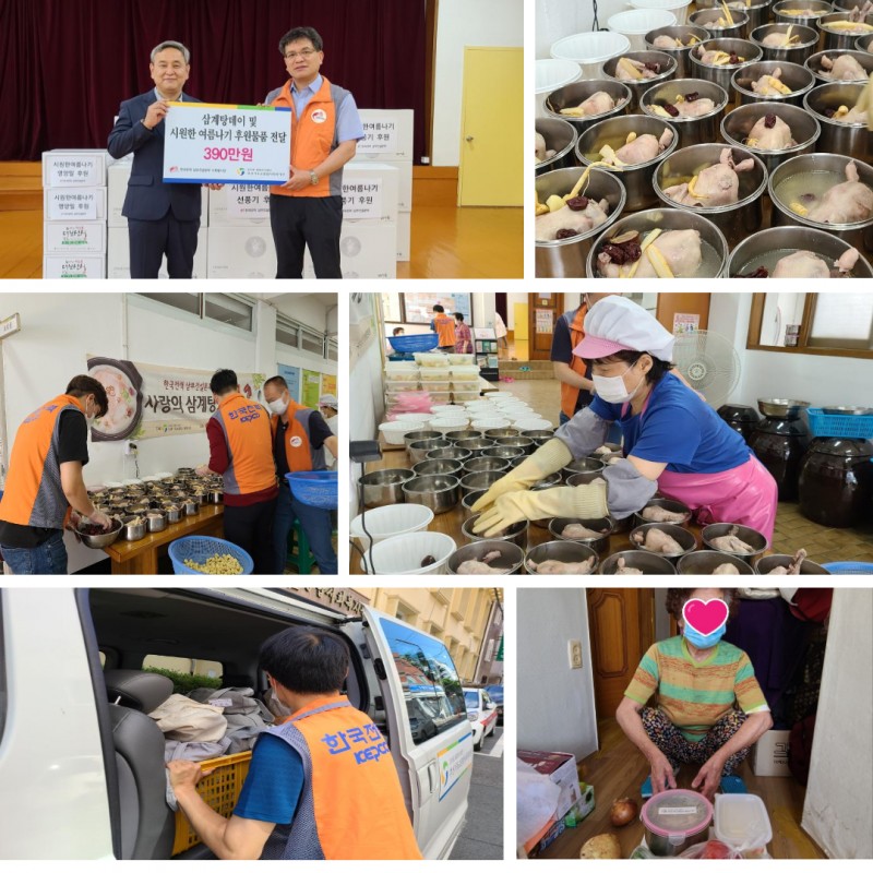 한국전력남부건설본부와 함께 삼계탕을 준비하고,