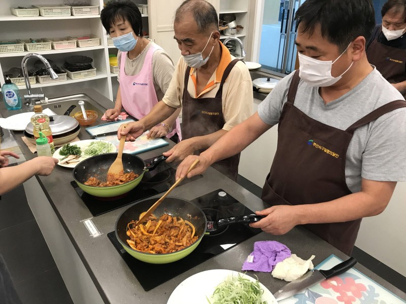 첫 활동이 시작된 지난주 수요일, 요리가 서툴러 천천히 따라하시는 분도, 왕년에 요리업에 종사했다며 화려한 칼질을 보여주시는 분 등 모습은 다르지만 서로 다른 맛으로 만남을 이어갔습니다.