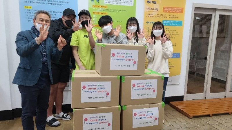 혜광고, 경남고, 남성여고, 서여고, 부경고등학교 연합동아리인 '다섯손가락'이 어버이날을 맞이하여 어르신들에게 감사의 마음을 담은 선물을 전달해주셨습니다.