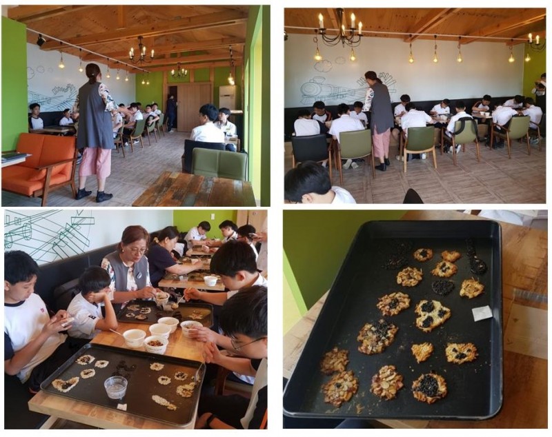 마을 선생님을 소개 받고 마을의 이야기들과 기찻집예술체험장의 시작도 들었습니다. 이어서 오늘 체험하기로 했던 쿠키 만들기를 했습니다.