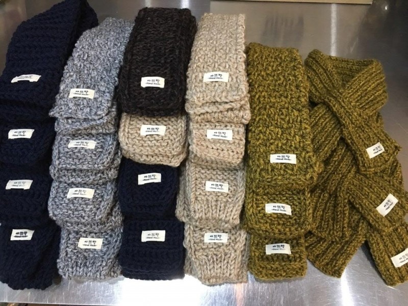 온전히 지역에 나눠드리기 위해 손이 보이지 않을 정도로 쁘띠목도리를 짜주셨어요~