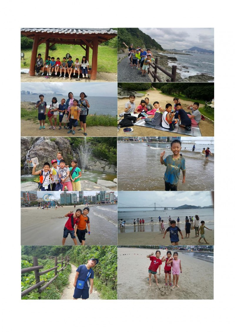 해파랑길을 걸어요! 이번 아동 문학트래킹 「도담도담 자연학교」 주제입니다. 8월 18일 (화)부터 19일(수) 이틀 간 우리는 독서삼매경에 빠졌습니다. 첫째 날에는 매미소리가 시원한 구덕공원에서 하루를 보냈습니다. 돗자리를 피고 옹기종기 엎드려 독서하고, 숨은 그림 실력을 뽐내고, 조별로 역할극도 선보였습니다. 둘째 날에는 책 속에 나오는 해파랑길을 찾아 직접 떠났습니다. 시원한 바닷바람을 맞으며 해안 길을 따라 걷다보니 ‘내가 사는 부산이 이렇게 아름다웠나’ 새삼 부산에 살고 있다는 것이 자랑스럽기까지 했답니다.