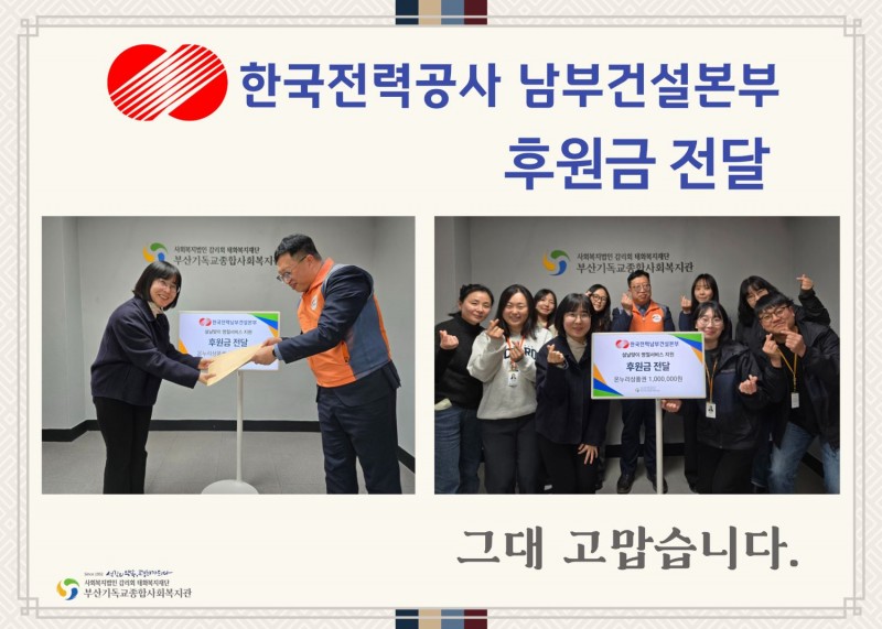 매년 변함없이 복지관과 지역사회를 위해 힘써주고 계신 한국전력남부건설본부에서