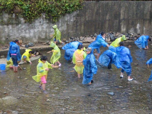 비가 조금씩 내리는 날씨였지만 비옷을 입고 아이들이 더 재미있게 체험을 하였답니다.