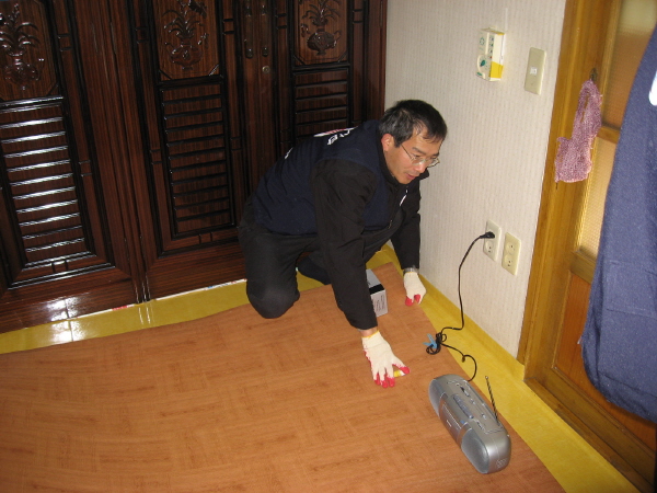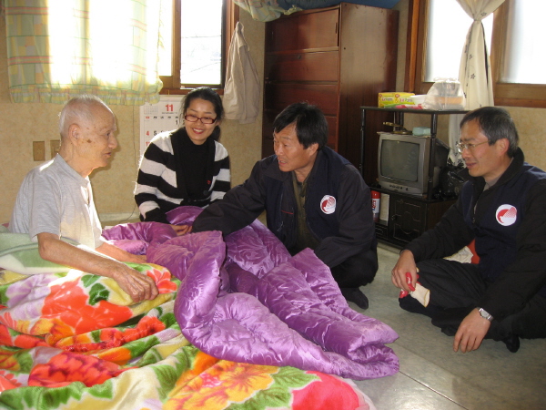 봉사단원들은 어르신 각 가정을 방문하여 직접 바닥에 난방용 패드를 깔아 드리고 따듯하고 포근한 이불을 전달하였습니다.