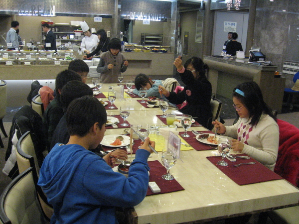 공연을 본 후, 배고파하는 아이들을 데리고 진역에 있는 헙성부페를 가서
