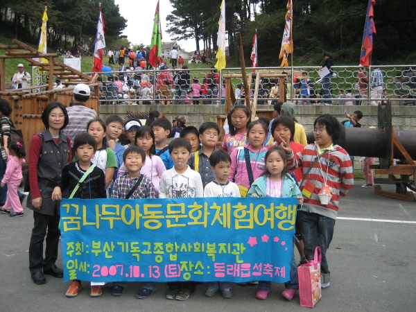 아동들은 동래장터에서 전통먹거리 외식체험을 한 후에