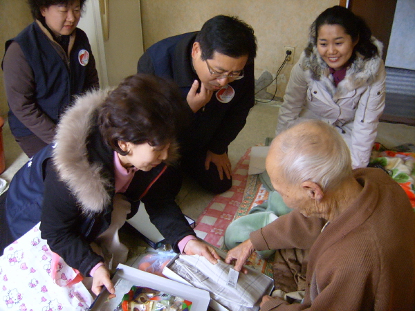 (재가어르신-내복, 사탕 및 과자, 귤 / 아동-내복, 저금통)
