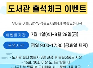 [공지]2025년 강유두작은도서관 여름방학 맞이 도서관 출석체크 이벤트 진행!