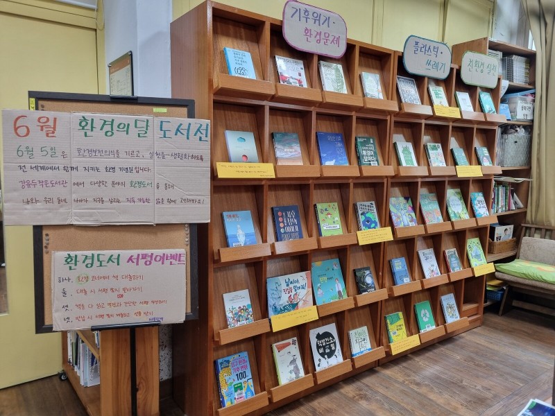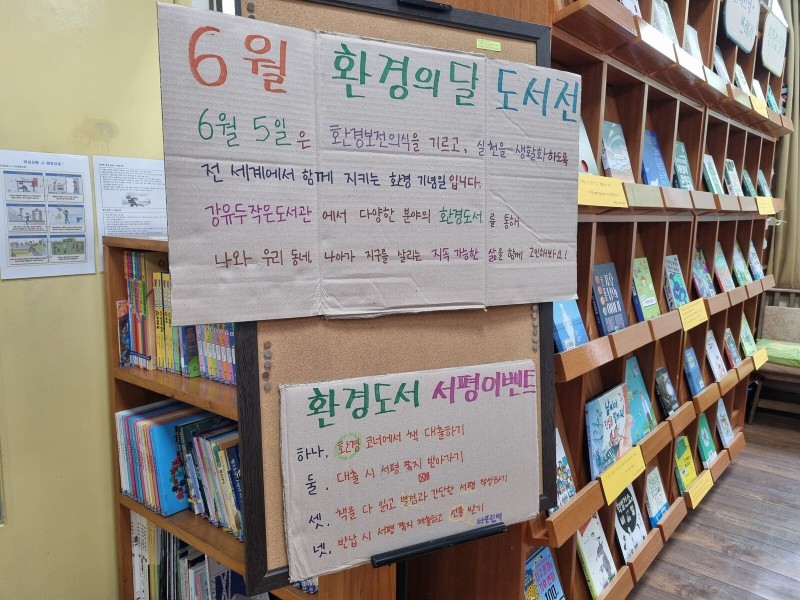 환경의 달을 맞이해 강유두작은도서관에서는 환경도서전이 열리고 있습니다.