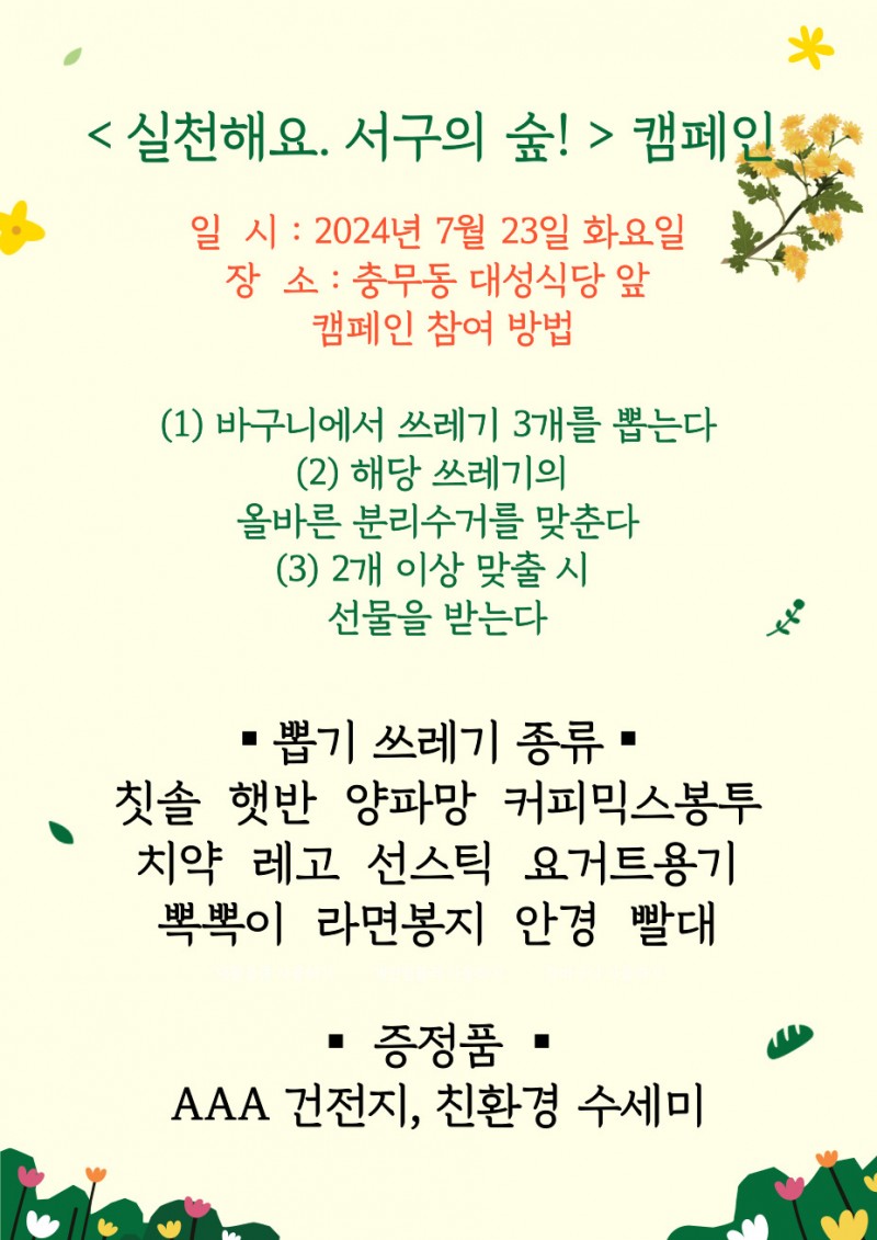 환경 보호를 위해 가장 쉽게 할 수 있는 작은 실천부터 시작해보며 서구의 숲을 만드는 데 동참해주세요!