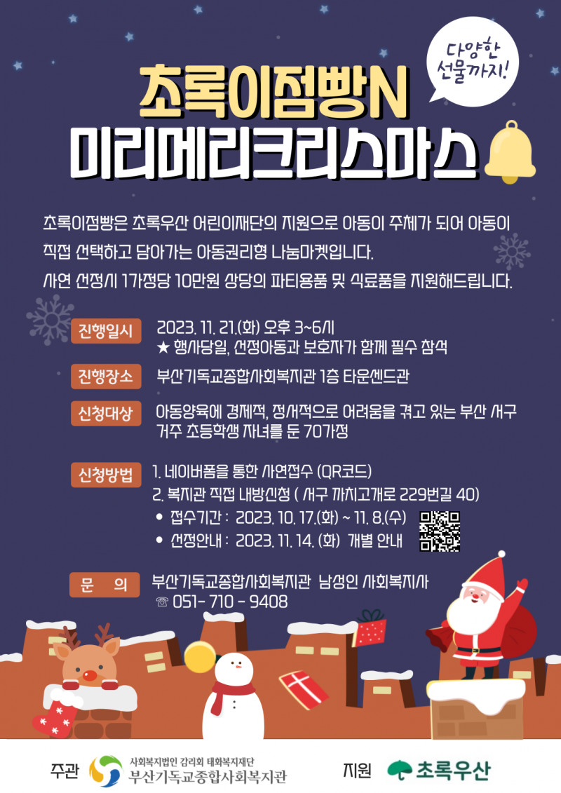 어린이 나눔마켓 초록이점빵N-미리메리크리스마스 참여자를 모집합니다.