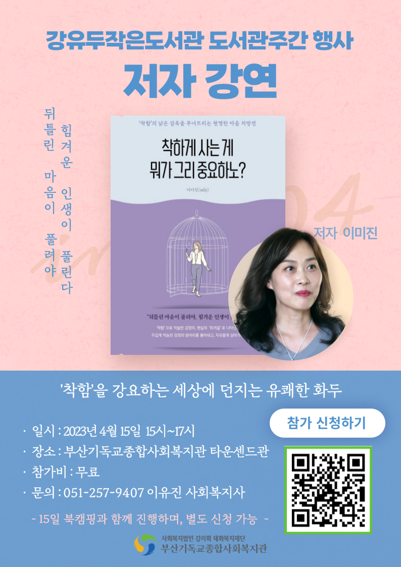 [착하게 사는 게 뭐가 그리 중요하노?]의 이미진 저자와의 만남을 진행합니다.