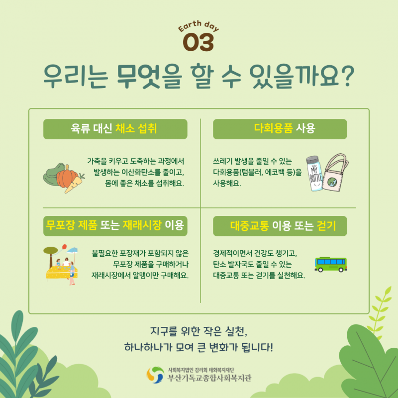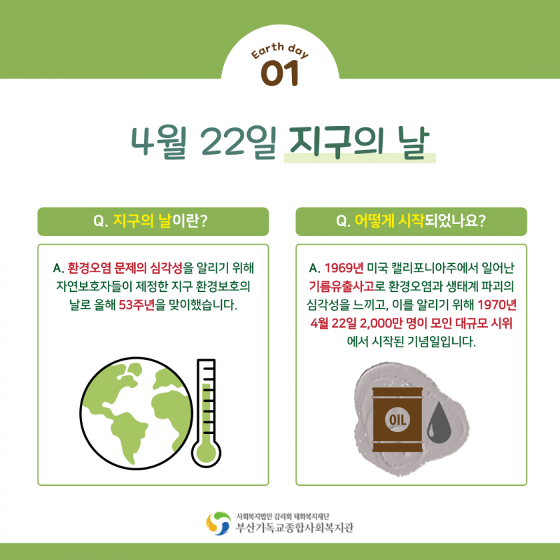 지구의 날이 무엇인지, 우리는 어떤 방법으로 지구를 지켜나갈 수 있을지 함께 고민해보는 시간이 되기를 바래봅니다!^^