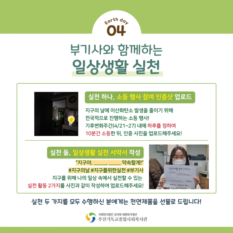 부기사 생활복지운동에서는 환경 관련 기념일 맞이 캠페인의 시작으로 '지구의 날 온라인 캠페인'을 진행합니다!