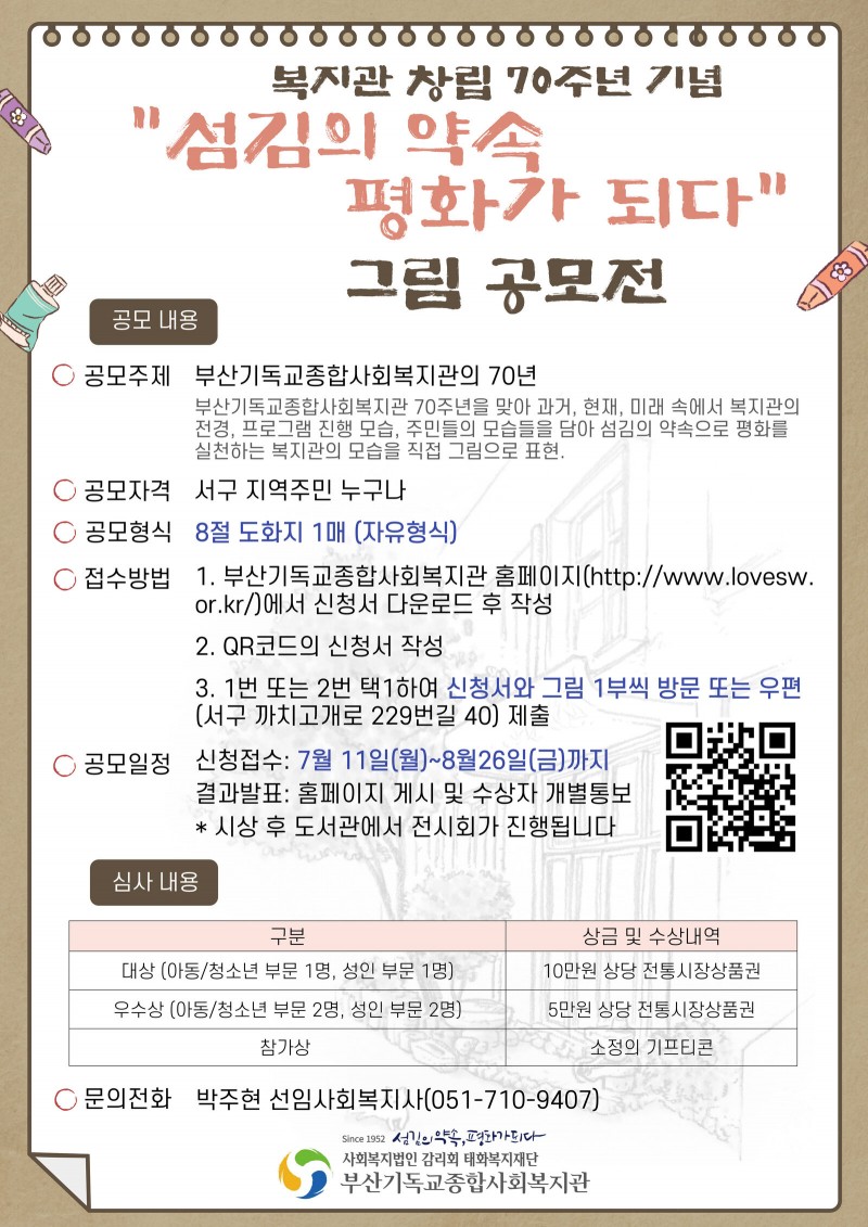 [공모전] 부산기독교종합사회복지관 70주년 기념 '그림 공모전'