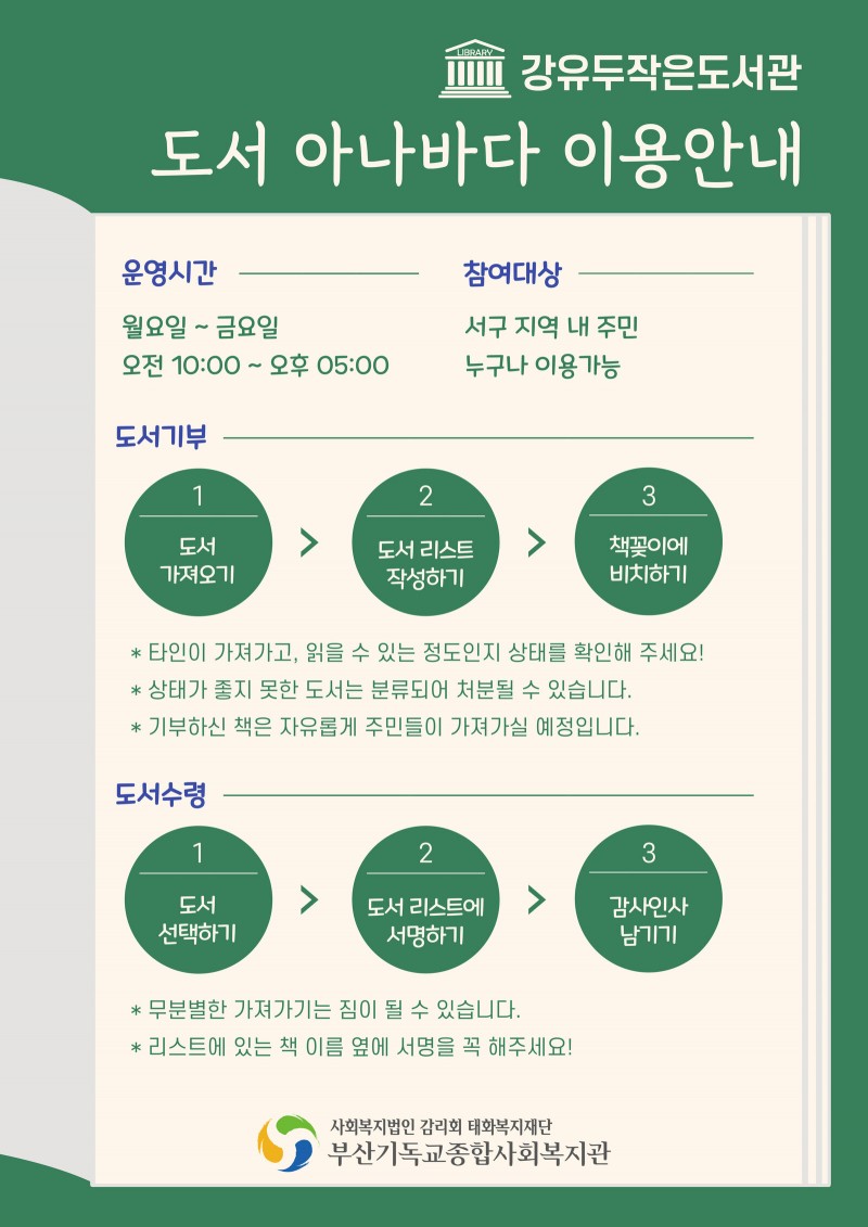 책으로 만들어가는 우리동네 도서순환의 공간! 강유두작은도서관에 놀러오세요!!