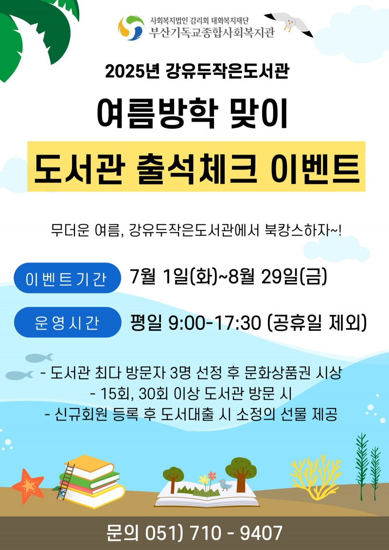 2025년 강유두작은도서관 여름방학 맞이 도서관 출석체크 이벤트 진행!